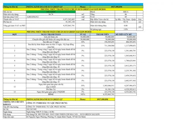 Phương thức thanh toán căn hộ Eco Green Sài Gòn 3 phòng ngủ HR1A0605: