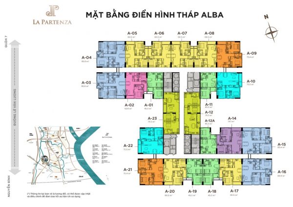 Mặt bằng dự án căn hộ chung cư La Partenza được thiết kế rất rõ ràng theo các loại diện tích phòng khác nhau, cố gắng tạo ra không gian sinh hoạt tối ưu, thuận tiện cho gia đình ở đông người hoặc cho cặp vợ chồng mới cưới…đặc biệt các căn hộ được bố trí mặt bằng hợp lý, tất cả các căn đều có view đẹp và không bị chết góc. Sảnh thanh máy rộng rãi và thoáng đãng. Trải đều trên các miền diện tích: 45m2 – 68m2 – 72m2- 85m2…đa dạng và vô cùng hợp lý khiến cho tất cả các căn hộ ở dự án này đều đáng được lựa chọn. Căn hộ La Partenza đem lại sự thoải mái trong thiết kế căn hộ các tầng của chung cư La Partenza.
