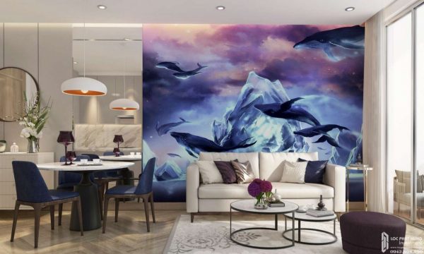 Sofa và bộ bàn ghế uống trà lấy tone xanh trắng làm chủ đạo, sự bố trí hợp lý của nội thất phòng khách làm cho không gian trở nên sang trọng, lịch sự.