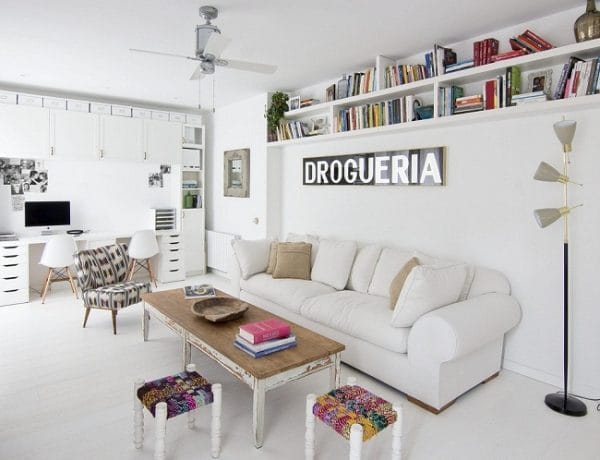 Đương nhiên ở nơi đón khách đầu tiên, ấn tượng luôn quan trọng, một sự sắp xếp gọn gàng, sach sẽ đến từng cuổn sách được xếp ngay ngắn trên kệ cũng như kế đó là nơi có thể làm việc của chủ nhà, một góc nhỏ thoải mái.
