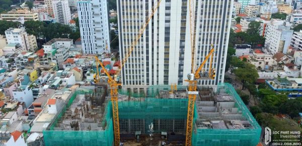- Hiện nay công trường đang vào giai đoạn thi công kết cấu các sàn điển hình bằng công nghệ cốt pha nhôm hiện đại và chính xác cùng với hệ bao che tự nâng forrmtech.