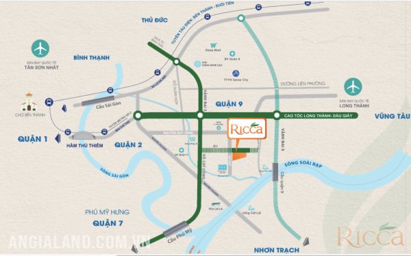 Dự án Ricca có vị trí Tọa lạc ngay trung tâm quận 9, đô thị tri thức trẻ, giàu tiềm năng gia tăng trong tương lai, Ricca kết nối trực tiếp với các quận trung tâm, trường học, bệnh viện quốc tế, kết nối Thủ Thiêm, Phú Mỹ Hưng, trung tâm thành phố vô cùng thuận tiện. Ricca tận dụng tối đa tiện ích của khu vực, dễ dàng kết nối với các trung tâm hành chính, trường học, bệnh viện, khu vui chơi, trung tâm thương mại, giải trí,..